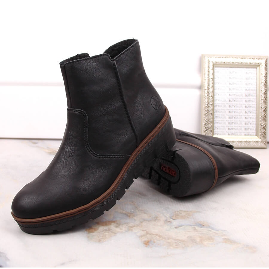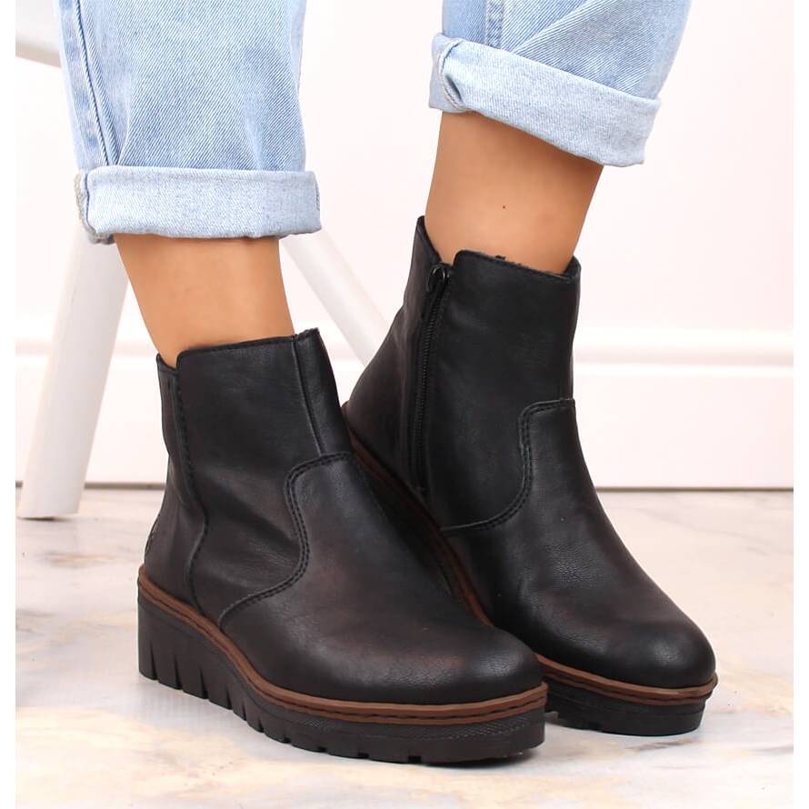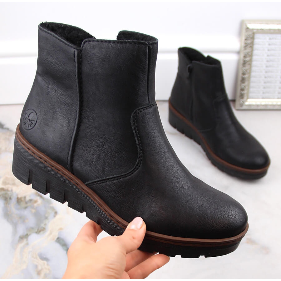Détails: Bottines compensées noires confortables et isolées pour femme Rieker X9165-00 le noir