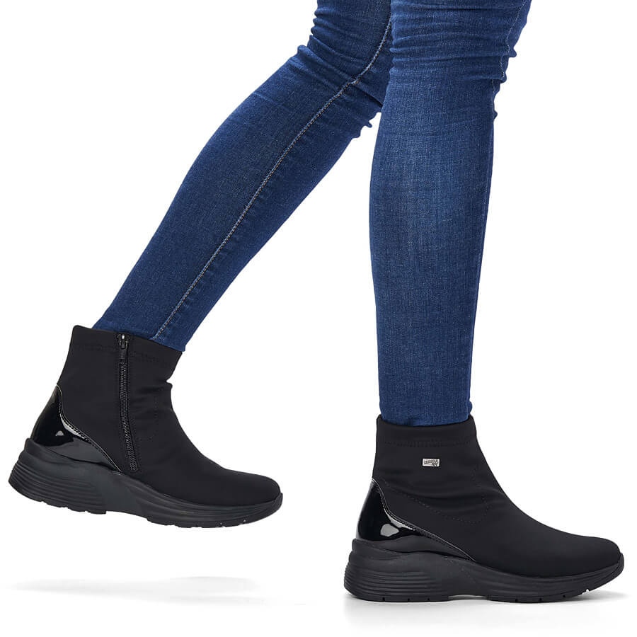 Détails: Bottines compensées noires imperméables pour femme Remonte D6677-03 le noir
