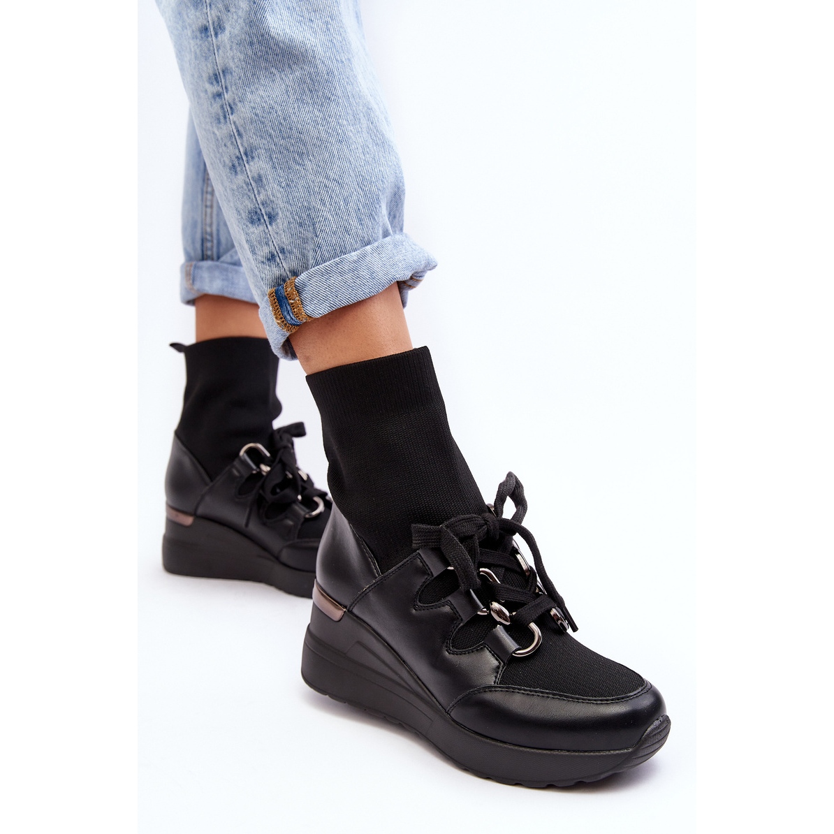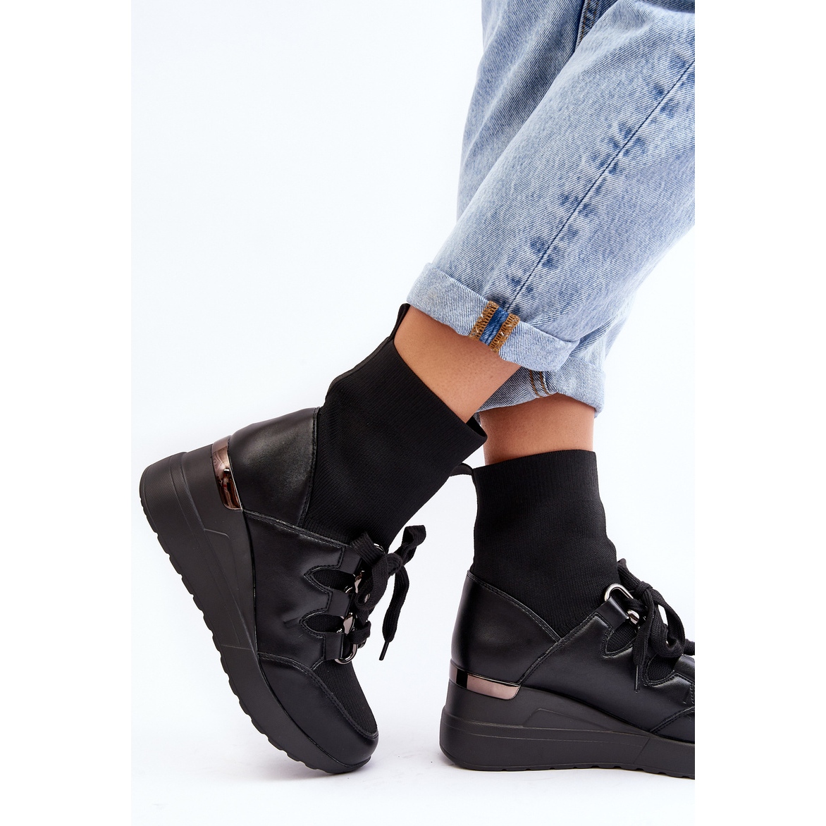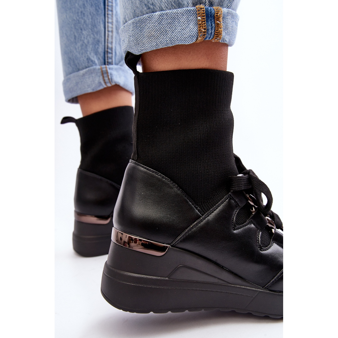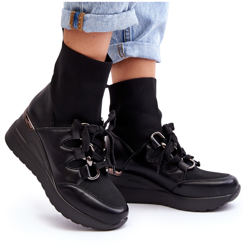 Détails: Bottines Compensées Pour Femmes Avec Chaussette Noir Helladina le noir