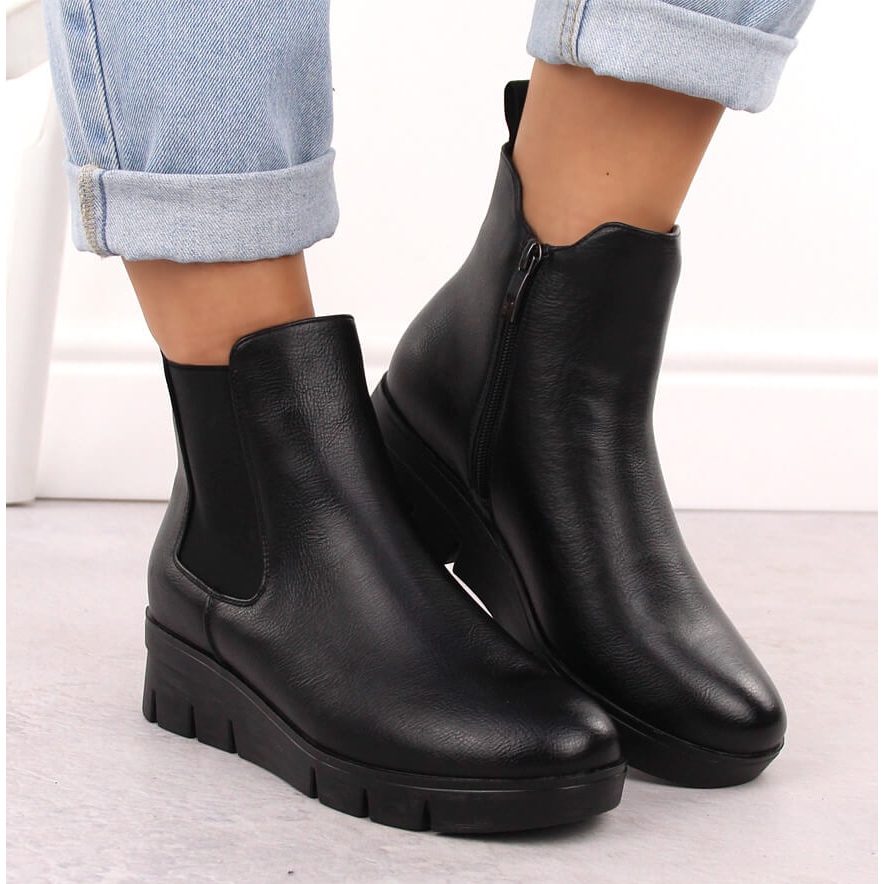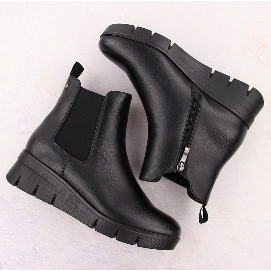 Détails: Bottines compensées pour femmes, noires Potocki 12433 le noir