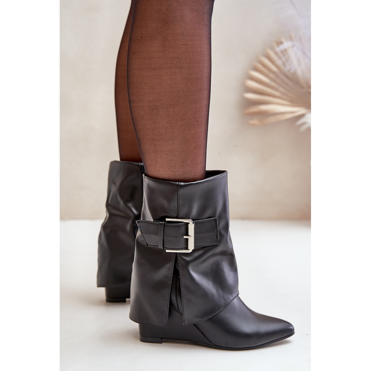 Les bottes compensées avec une tige retroussée et une boucle noire sont un choix parfait pour les femmes qui apprécient à la fois le style et le confort. Fabriquées en cuir écologique de haute qualité, ces bottines originales allient design moderne et élégance intemporelle.