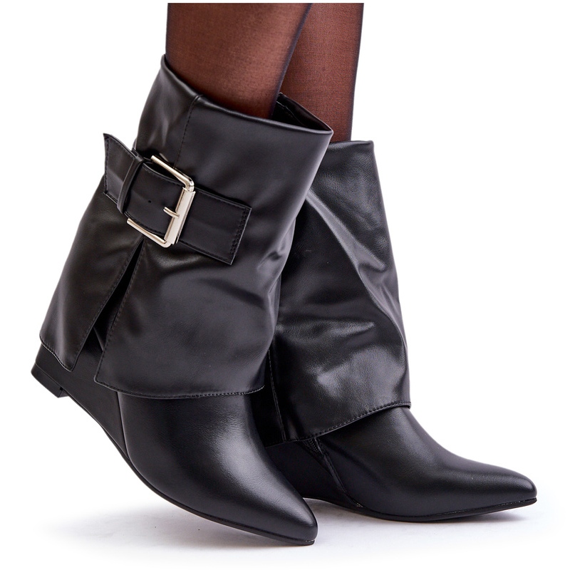 Détails: Bottines compensées Vortinia noires avec tige retroussée et boucle le noir