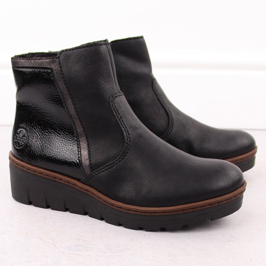 Rieker Bottines confortables pour femmes noires vernies Rieker X9150-00 le noir
