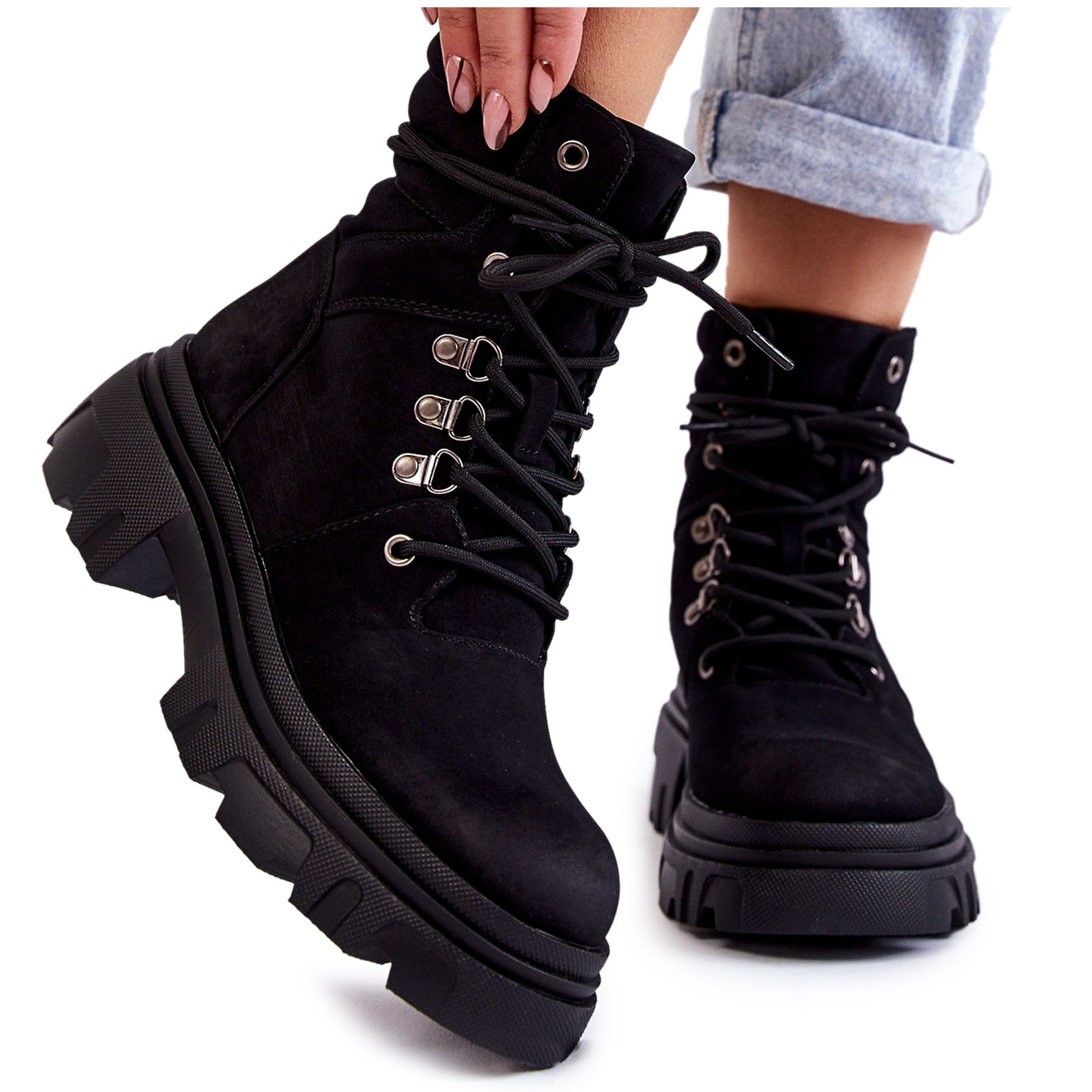 Bottines Cuir Chaudes à Lacets Noir Merisha