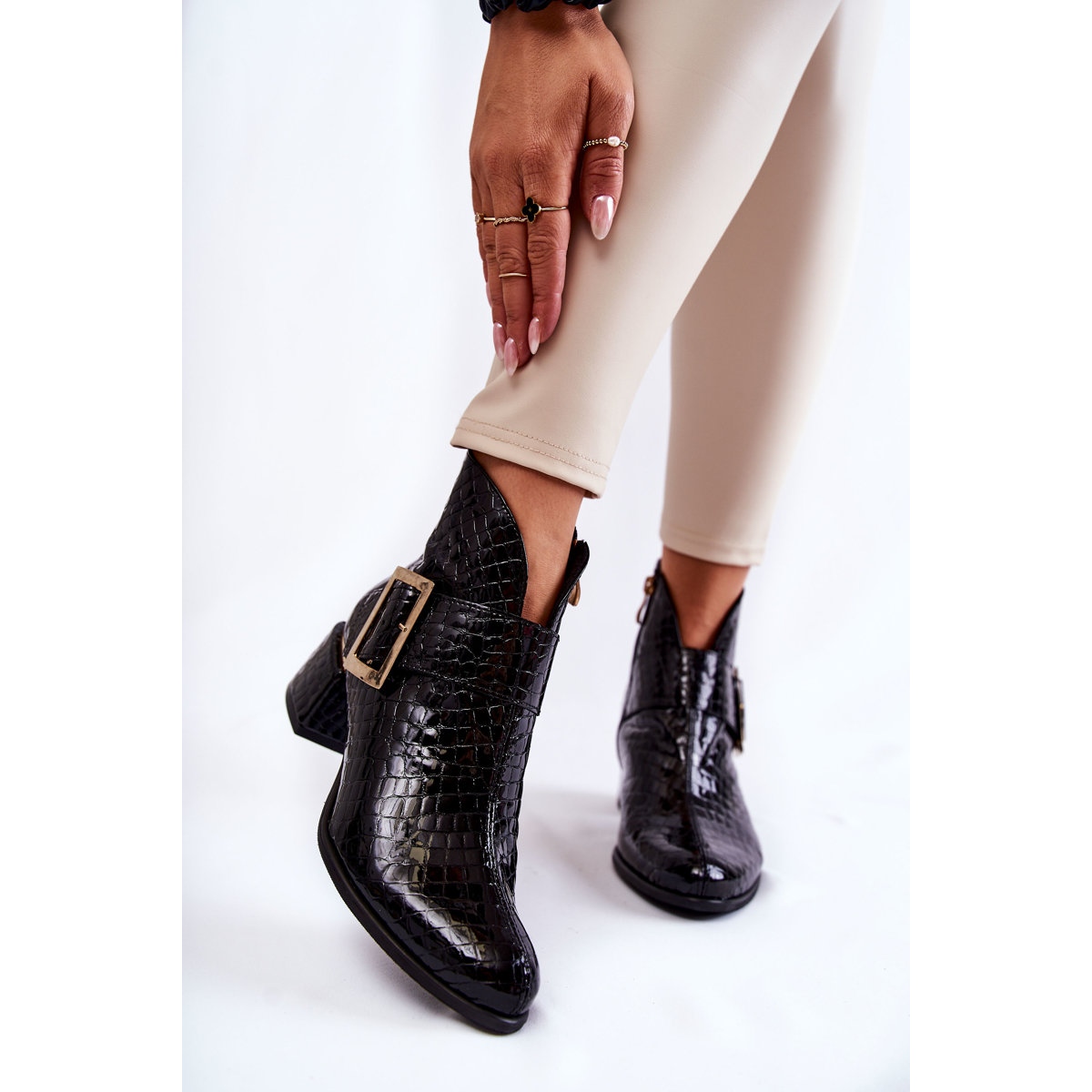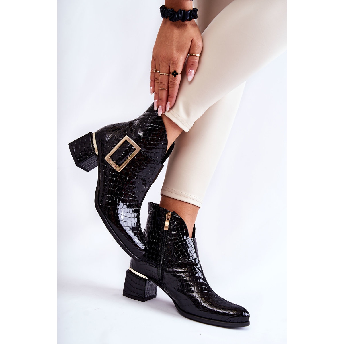 Détails: PA2 Bottines Cuir Crocodile Zip Noir Briana le noir