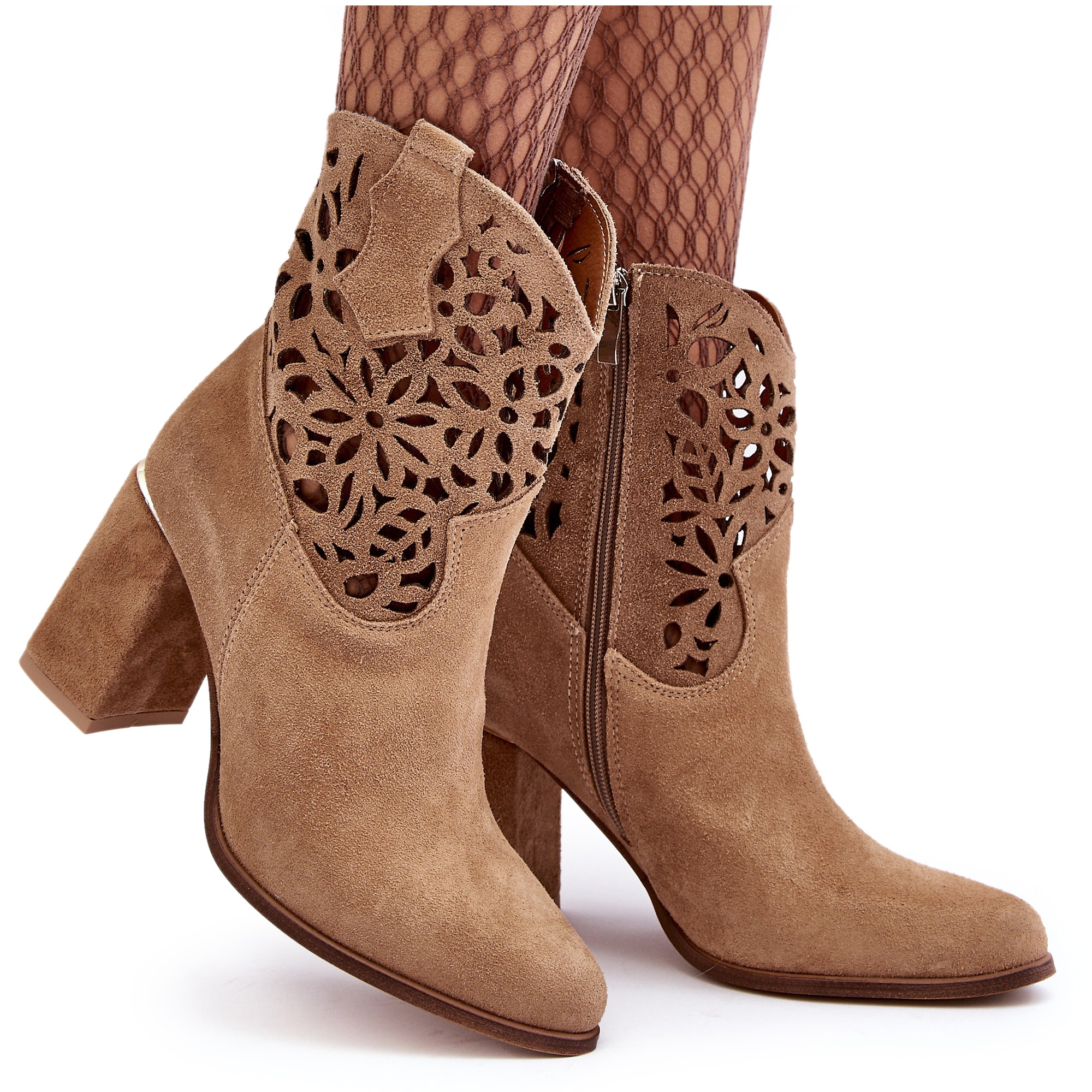 Lewski Shoes Lewski Shoes Bottines Daim Ajourées Leewski Shoes 3264 Beige Foncé brun
