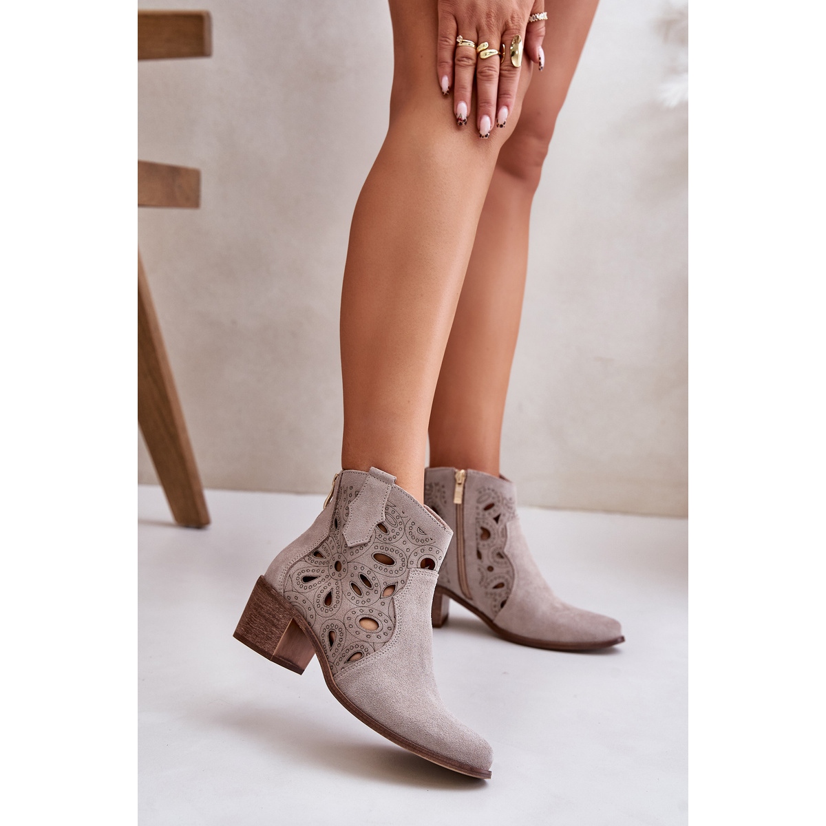 Détails: Bottines Daim Ajourées Lewski Shoes 3170/2 Cappucino beige