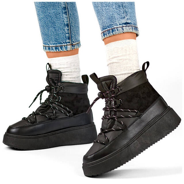 Ces chaussures d'hiver ont été conçues pour les utilisateurs qui apprécient le style et les fonctionnalités. Ils ont une plate-forme plate d'une hauteur de 4,5 cm, ce qui garantit la stabilité lors de la marche sur la neige ou les surfaces glissantes. Le fermoir en dentelle permet un ajustement parfait au pied, et le nez rond vous permet de déplacer librement vos doigts.