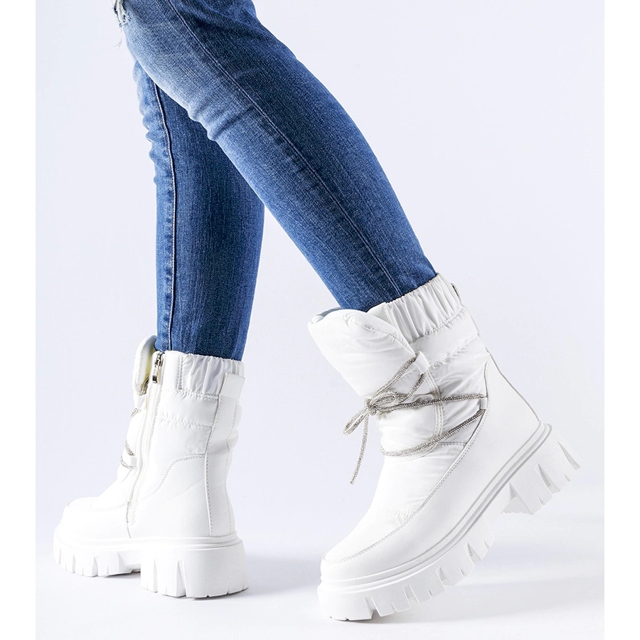 Bottes de neige blanches avec zircons de Pettenasco - style et chauffage les jours froids