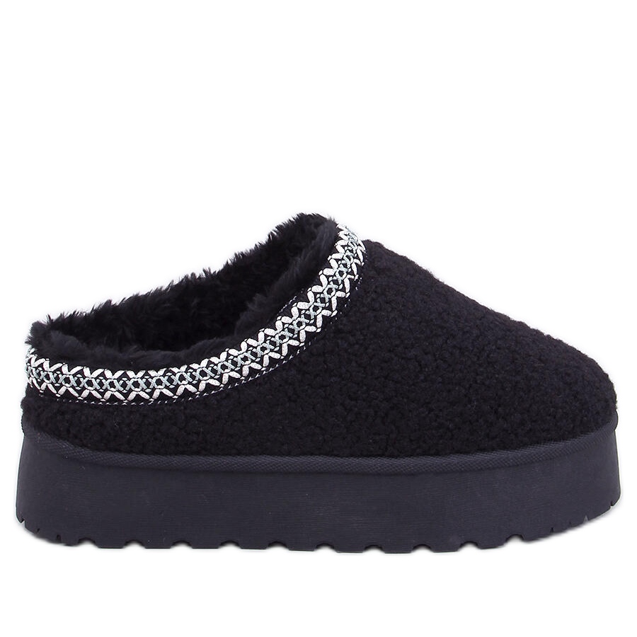 Bottes de neige pour femmes avec agneau et broderie - noir
