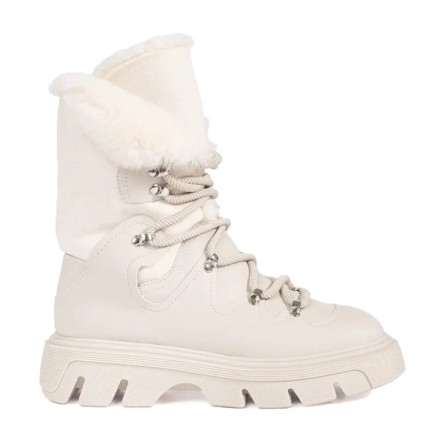 Détails: Seastar Bottines de neige femme à lacets beiges avec fourrure sur la plateforme