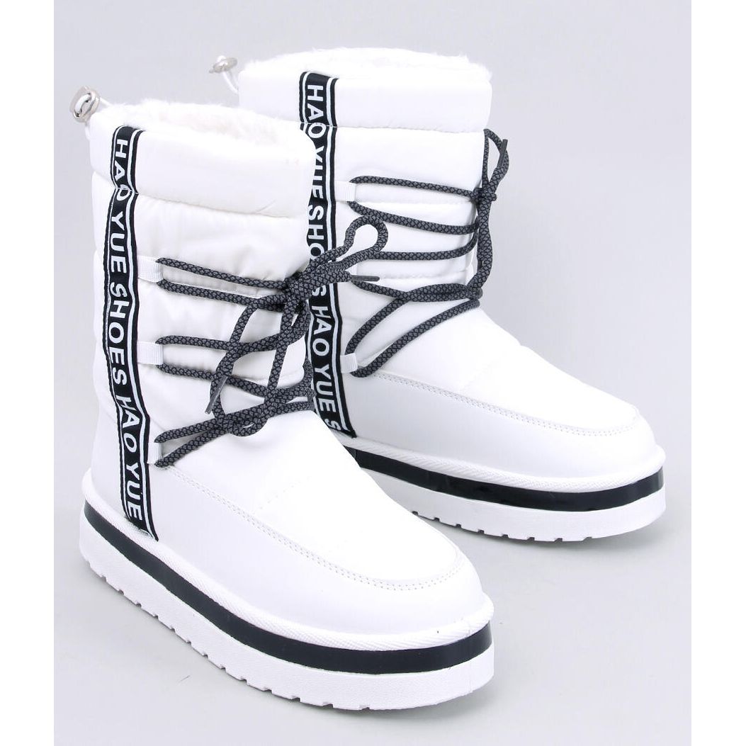 Les chaussures sont finies avec une fourrure de haute qualité, qui décore non seulement l'intérieur des bottes de neige, mais recouvre également les pieds d'un matériau chaud et doux. La fourrure blanche en harmonie avec la couleur blanche du tissu et le cuir écologique crée un ensemble cohérent et élégant. La tige qui arrive au-dessus de la cheville protège en outre du froid et de la neige, tout en conservant un look tendance.