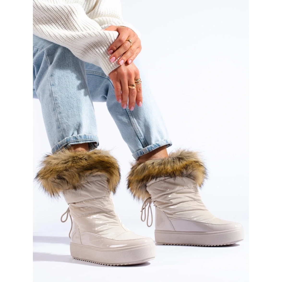 Détails: Bottines de neige femme Shelovet crème avec fourrure doré