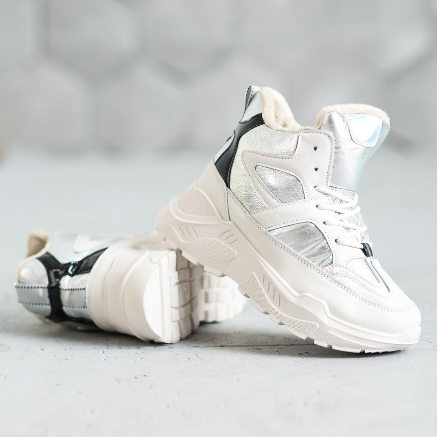 Découvrez une nouvelle dimension de style avec nos bottines Fashion Sports en blanc et gris ! Ces bottes uniques sont un incontournable absolu pour toute femme à la mode qui souhaite allier confort et élégance. Grâce aux inserts métalliques argentés et noirs, vous pourrez facilement compléter votre style de tous les jours en lui donnant un caractère moderne.