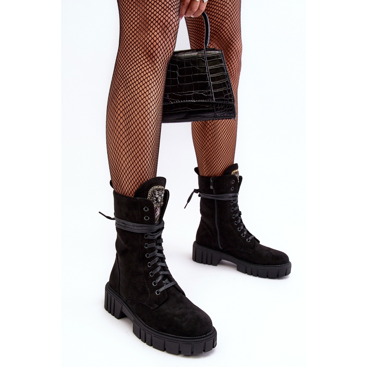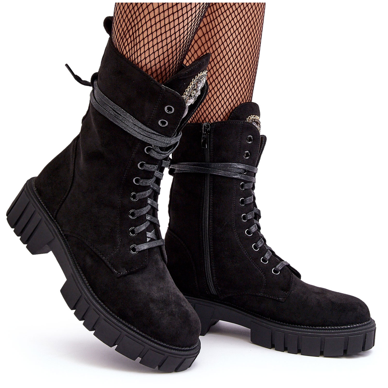 Détails: Bottines de travail en daim avec décoration de bijoux, Black Marx le noir