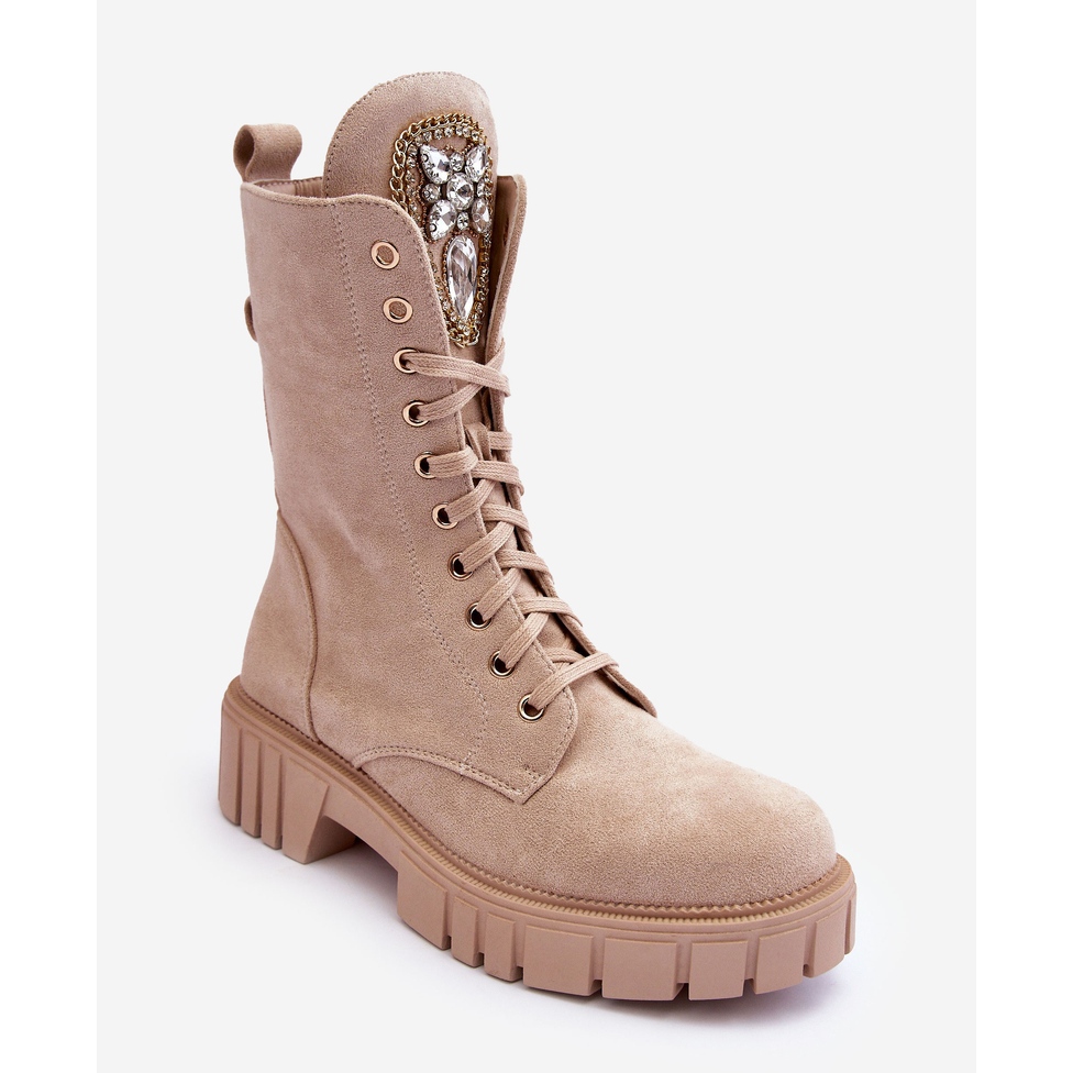 Détails: Bottines de travail en daim beige Marx avec décoration de bijoux