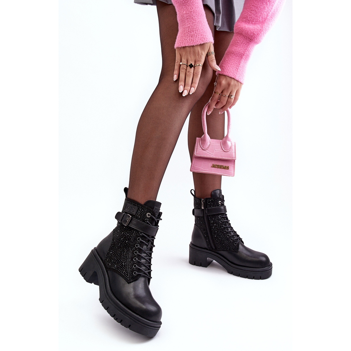 - Modèle: Bottines de Travailleuse en Cuir Ornées de Strass