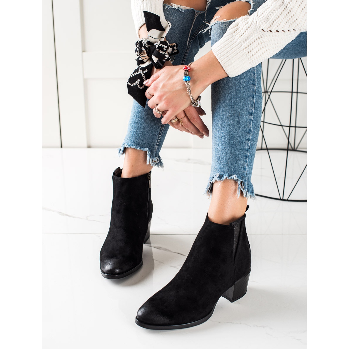 Les bottines W. Potocki élégantes et confortables sont le choix parfait pour les femmes qui apprécient à la fois un look à la mode et un confort de port. Ces bottes noires décontractées en imitation daim de haute qualité sont parfaites pour un style quotidien ainsi que pour des occasions plus élégantes.