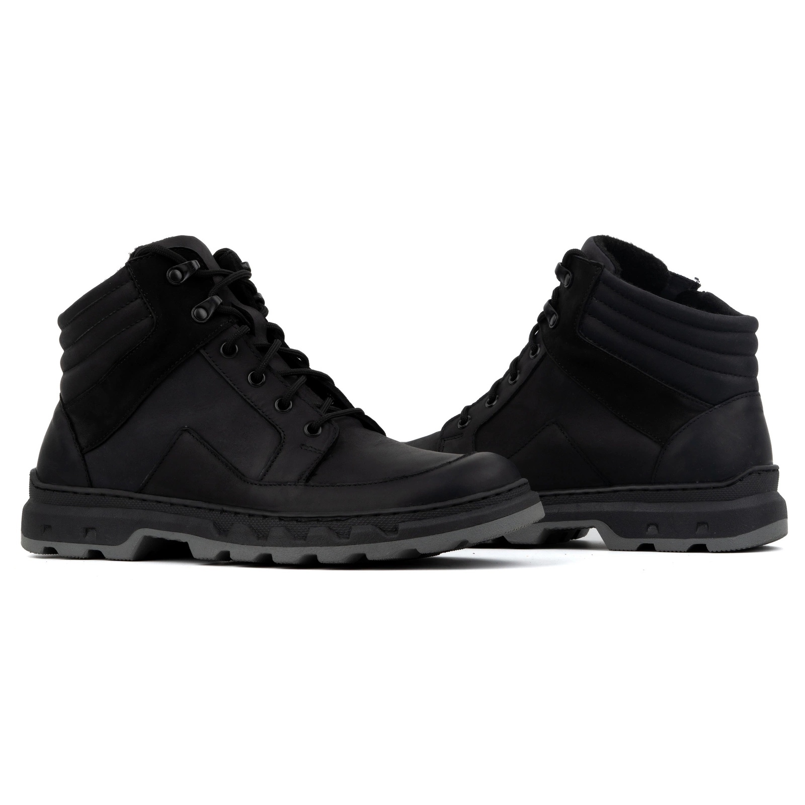 Détails: Bottines d'hiver à lacets en cuir pour hommes WASAK 0220 noir le noir