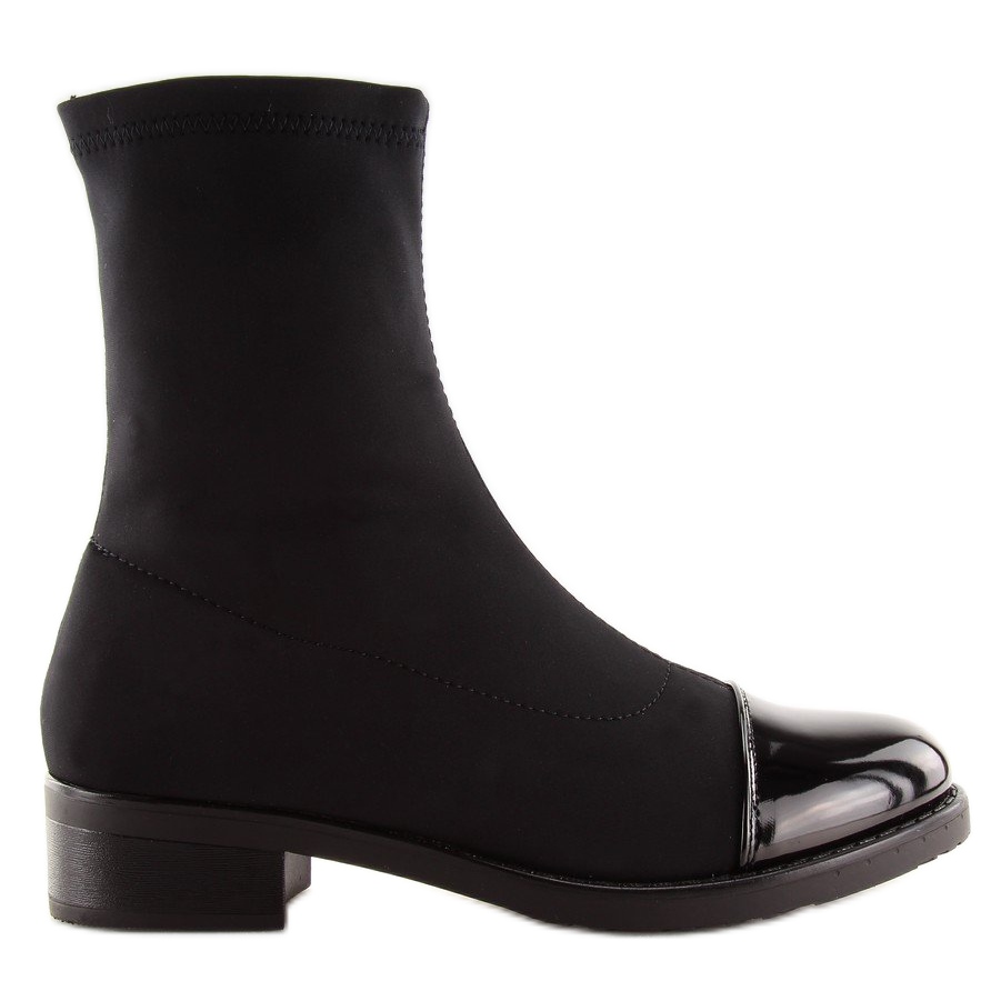 Ajoutez un peu de style et d'élégance à votre garde-robe avec les bottines noires élastiques noires NC780 Black. Ces bottes plates pour femmes uniques sont une proposition idéale pour les femmes qui apprécient le confort et le design original. La tige haute en tissu élastique s'adapte parfaitement à la forme de la jambe et les élégants bouts vernis ajoutent de la sophistication.