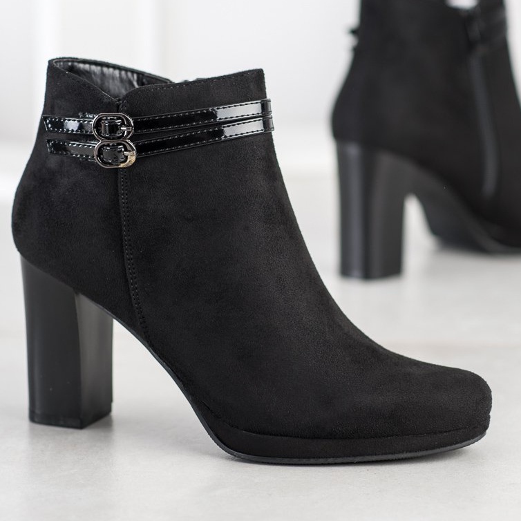 Découvrez l'élégance et le confort avec les bottines noires M.Daszyński, qui deviendront le complément parfait à votre collection de chaussures. Ces belles bottes à talons hauts, arrivant légèrement au-dessus de la cheville, attireront certainement l'attention lors de n'importe quelle fête. Fabriqués en cuir suédé de haute qualité, ils présentent une finition élégante qui leur confère un style unique.