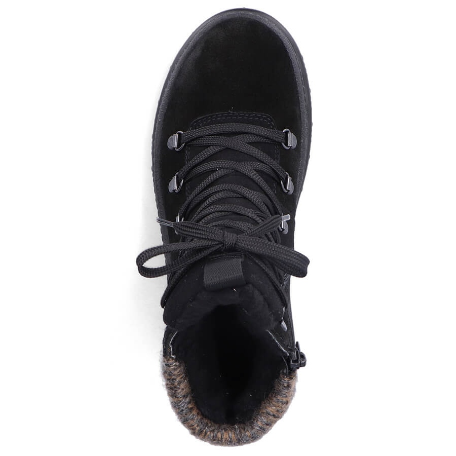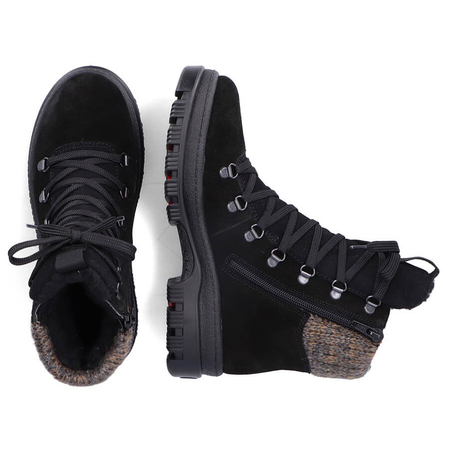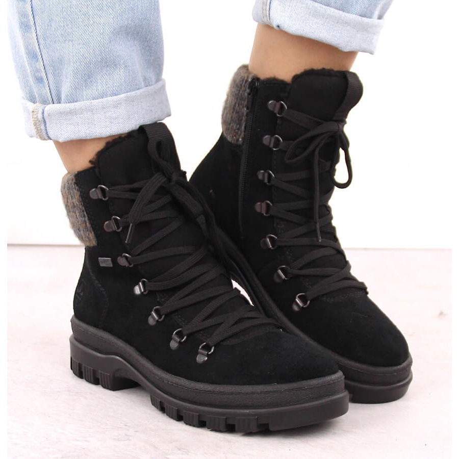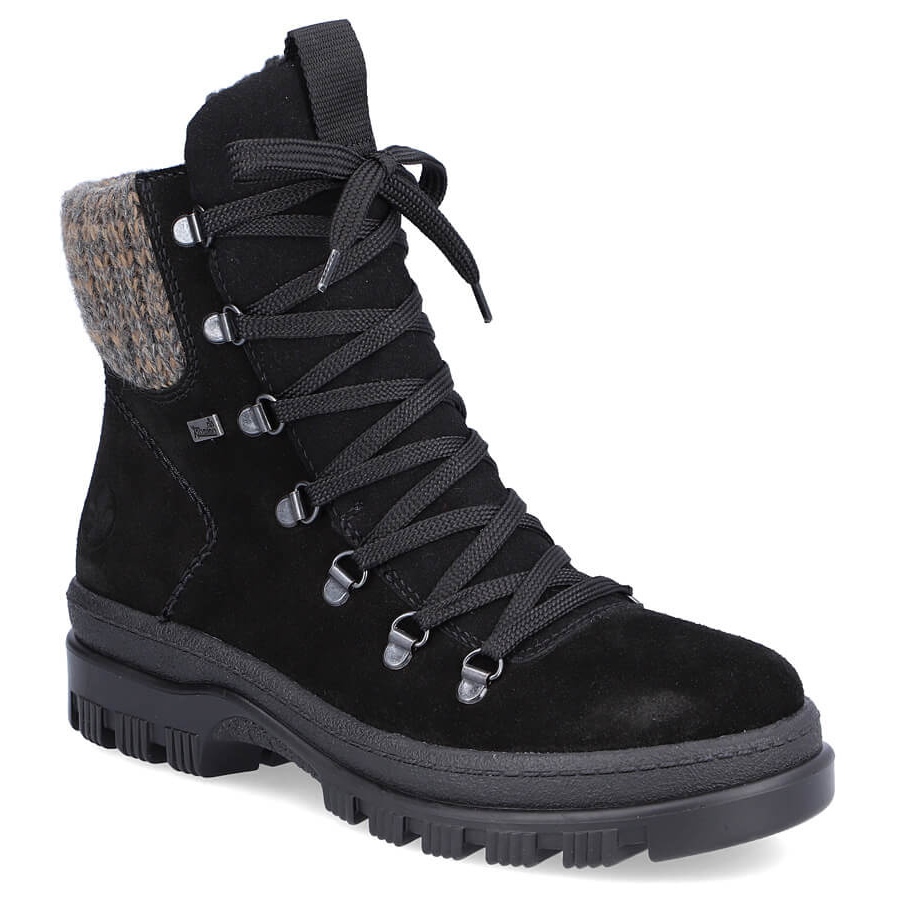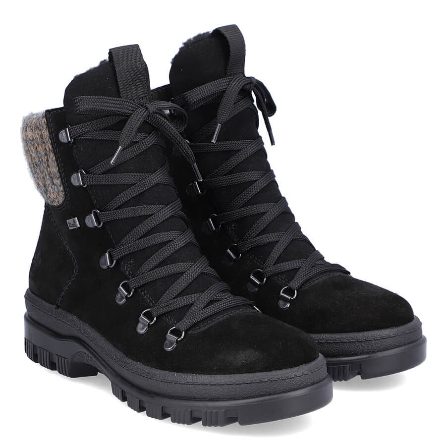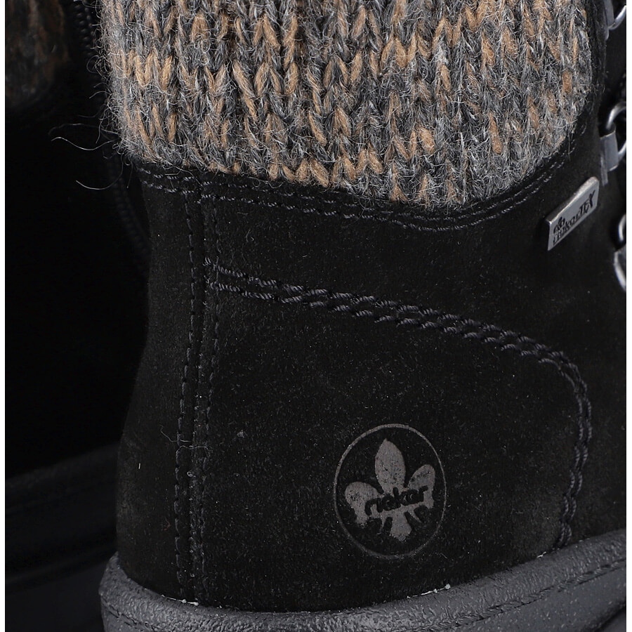 Détails: Bottines en cuir à pointes pour femme, noires Rieker X8200-00 le noir