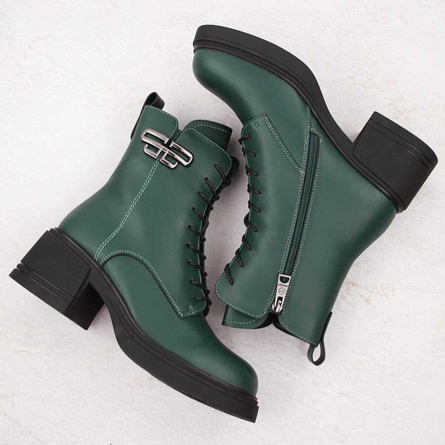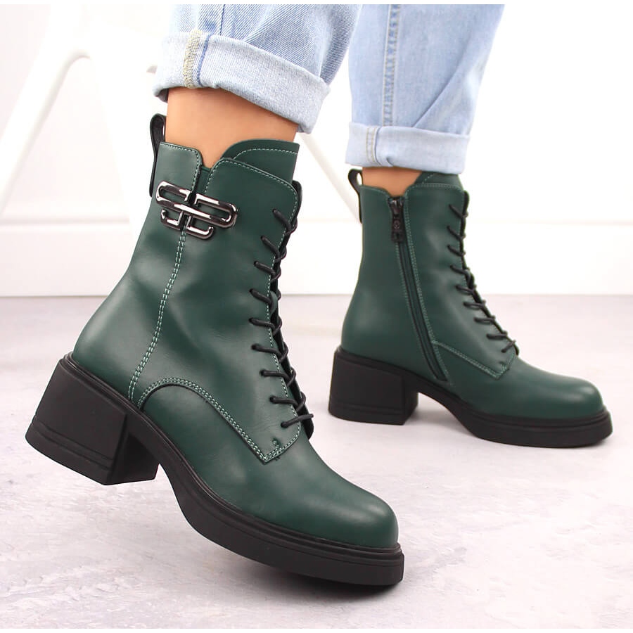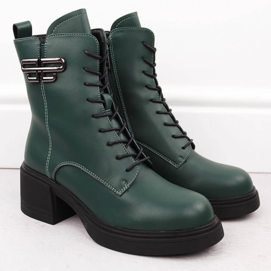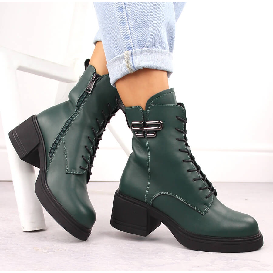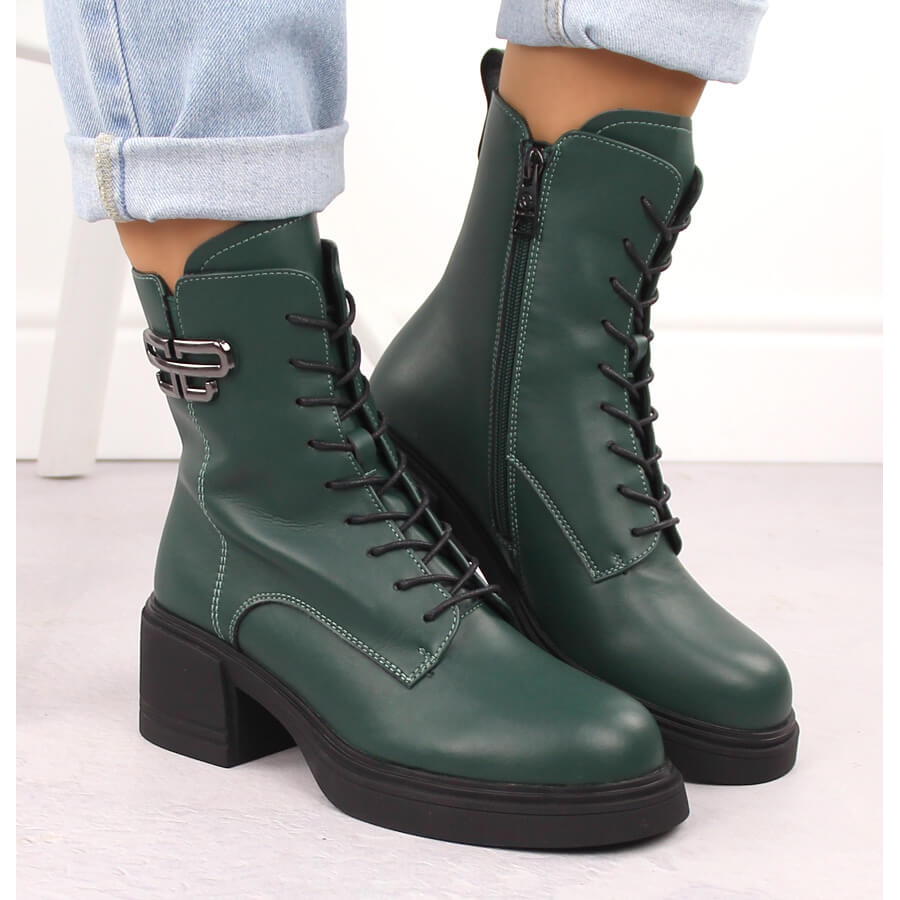 Détails: Bottines en cuir à talon haut et plateforme pour femme, isolées vert Vinceza 66682