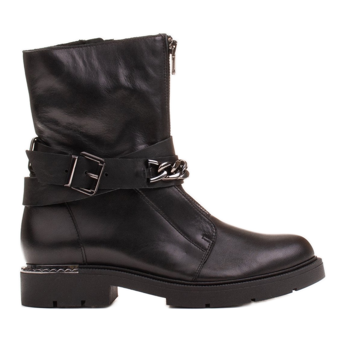 Marco Shoes Marco Shoes Bottines en cuir avec chaîne, boucle et fermeture éclair. Trappeurs le noir