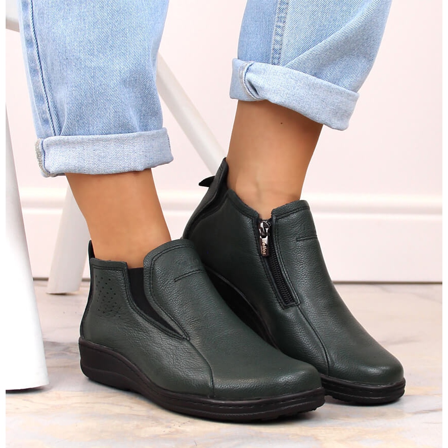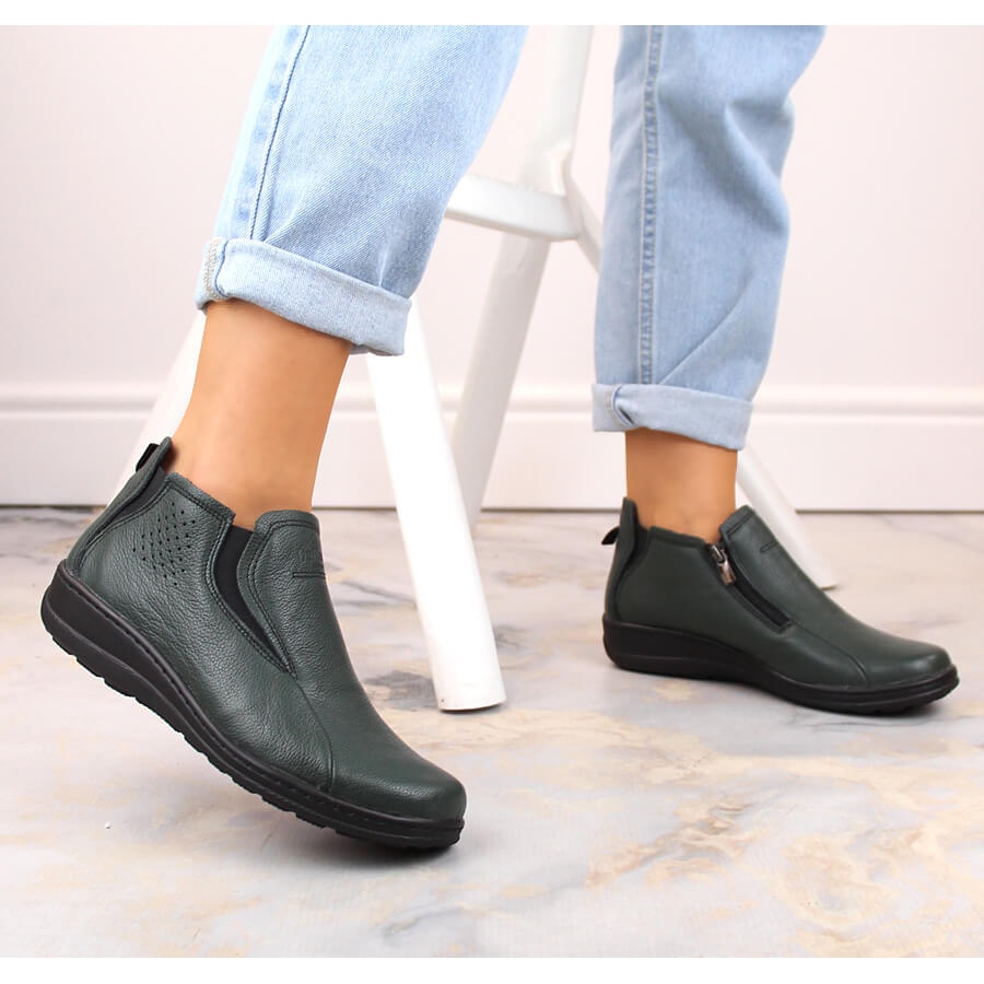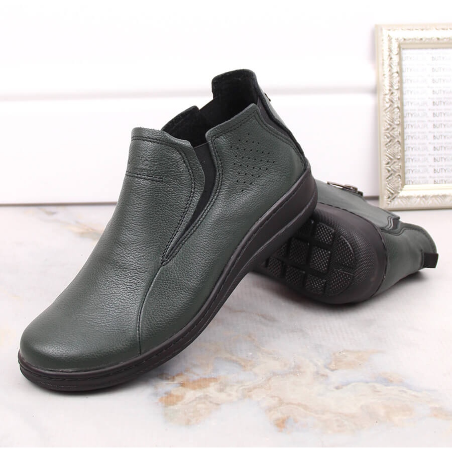 Élégance et confort les jours d'hiver - Bottines en cuir femme confortables et isolées, vert Helios 566