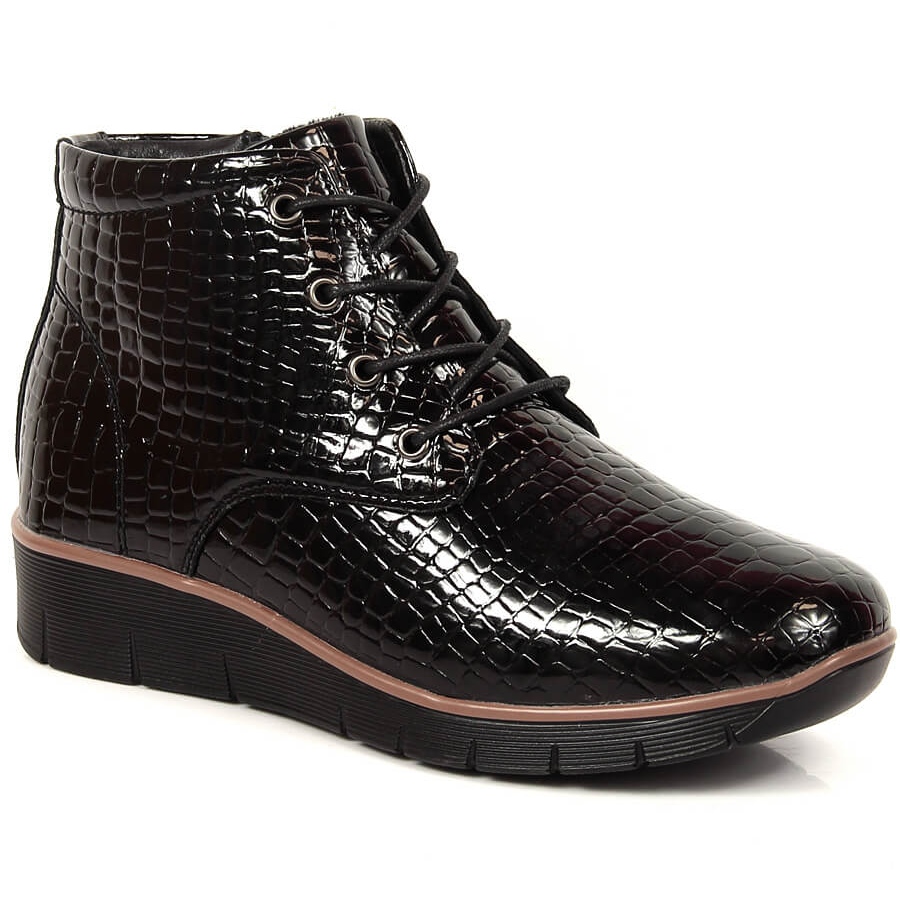 Les bottes sont équipées d'une fermeture éclair et d'un laçage, ce qui permet un ajustement parfait au pied. Le style décontracté et la finition laquée créent un look à la fois élégant et décontracté qui se marie parfaitement avec une variété de styles, au quotidien comme pour les occasions spéciales.