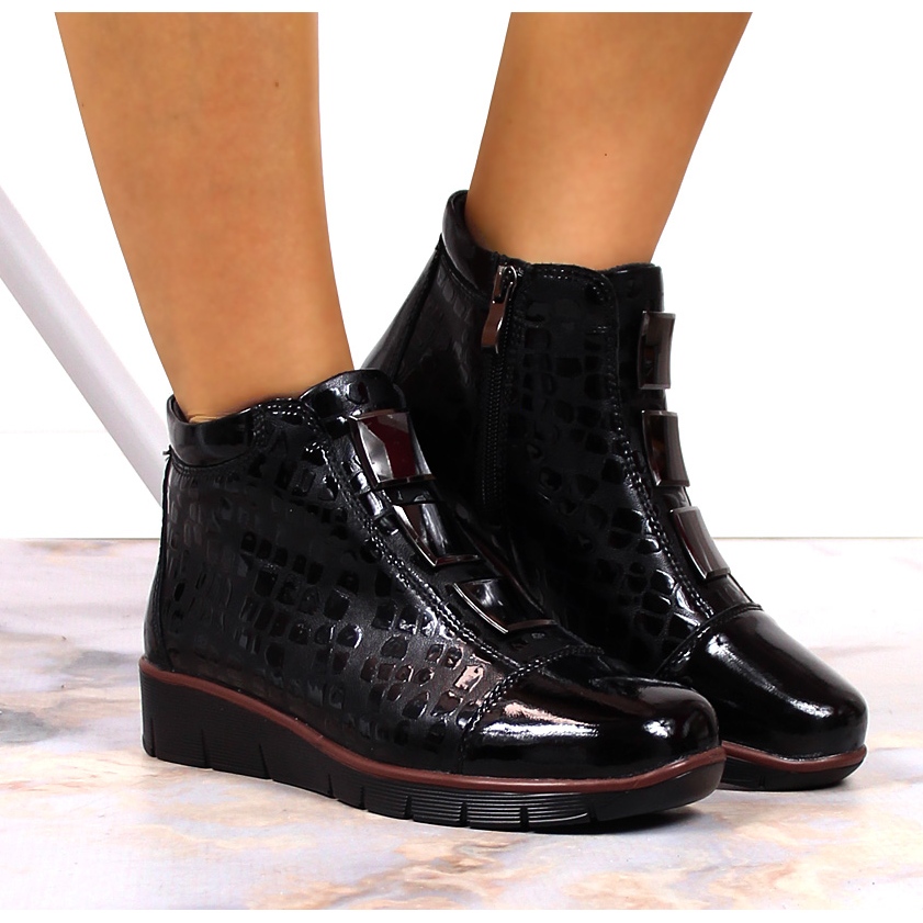 Détails: Bottines en cuir laqué avec Filippo isolé noir le noir