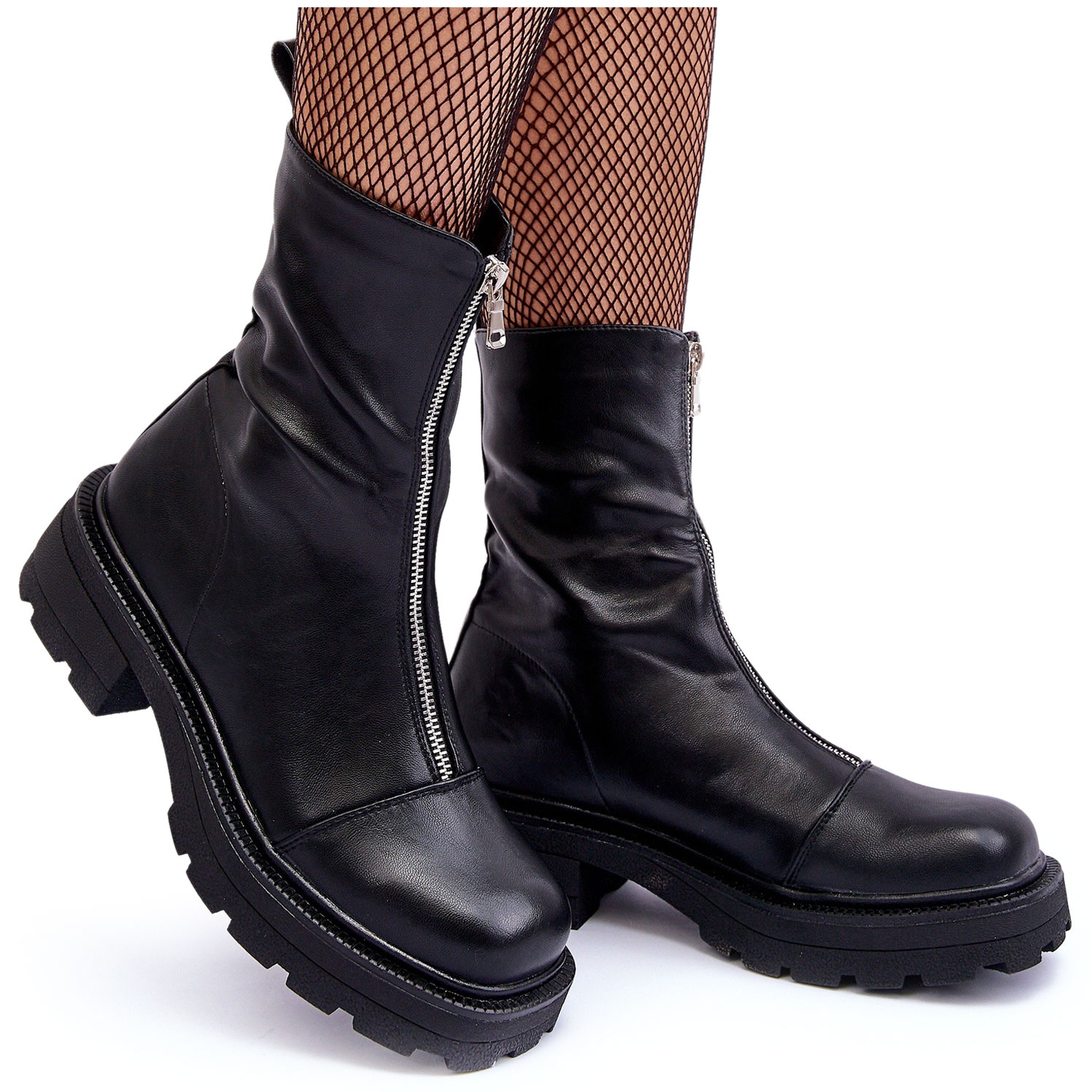 Détails: Bottines En Cuir Pour Femme Avec Fermeture Éclair Noir Aravalur le noir