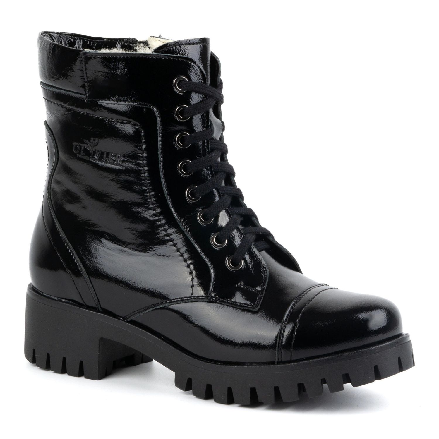 Olivier Olivier Bottines en cuir pour femme, isolées, 272BB, cuir verni noir le noir