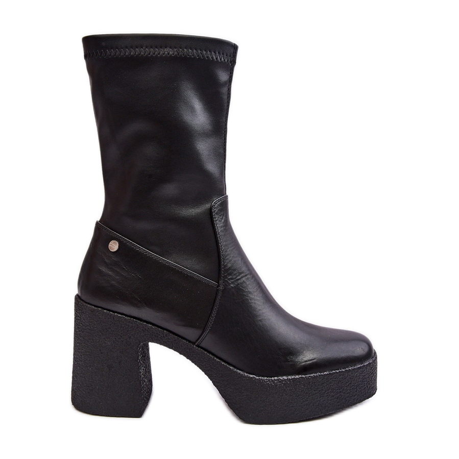 Fabriquées à partir d'une combinaison de cuir naturel et écologique de haute qualité, ces bottes se caractérisent par une construction solide et un aspect classique. La semelle épaisse et le talon en forme de bâton (8,5 cm de hauteur) assurent stabilité et confort de port tout au long de la journée. De plus, l'isolation de la couverture de chaussure à l'intérieur de la chaussure garde vos pieds au chaud même par temps froid.
