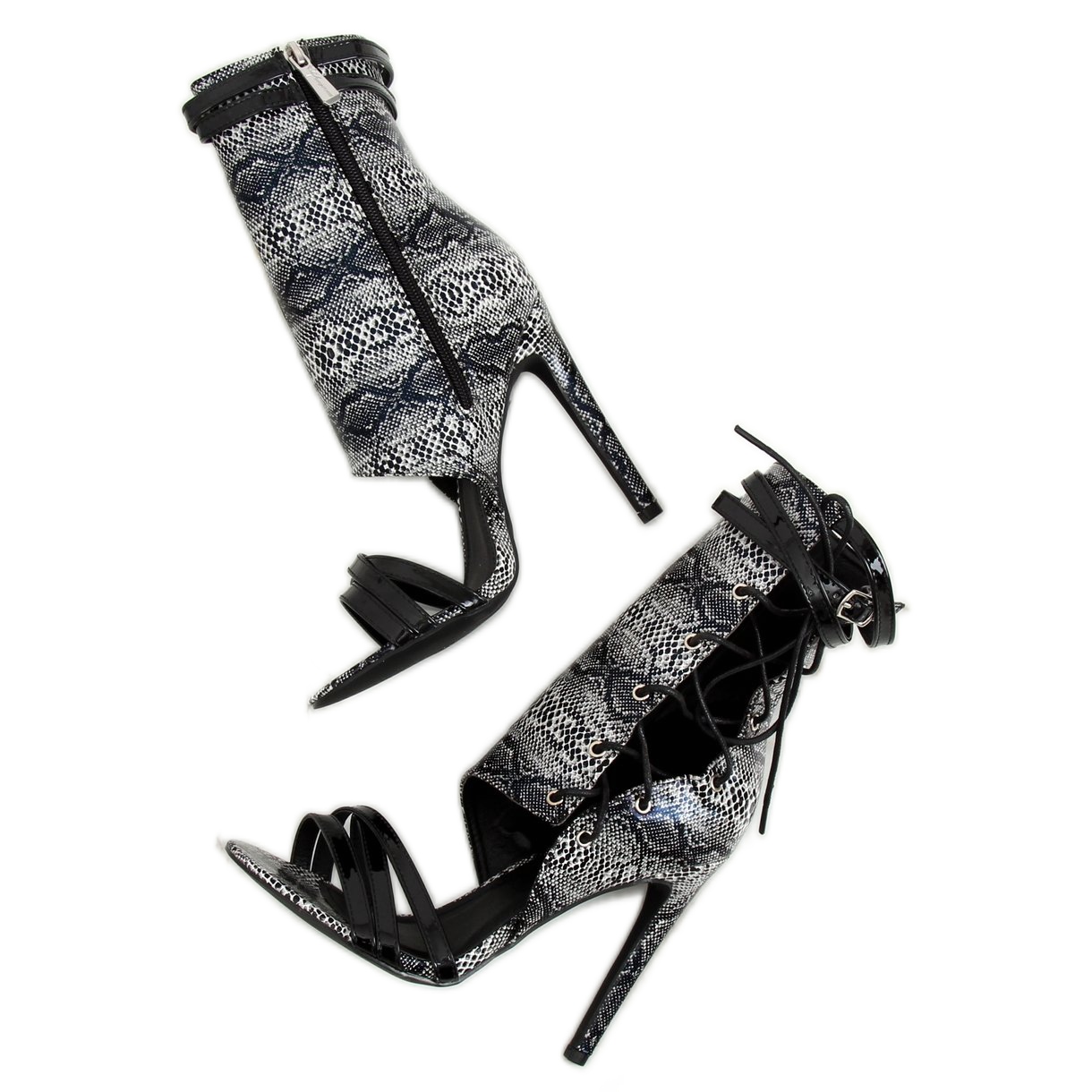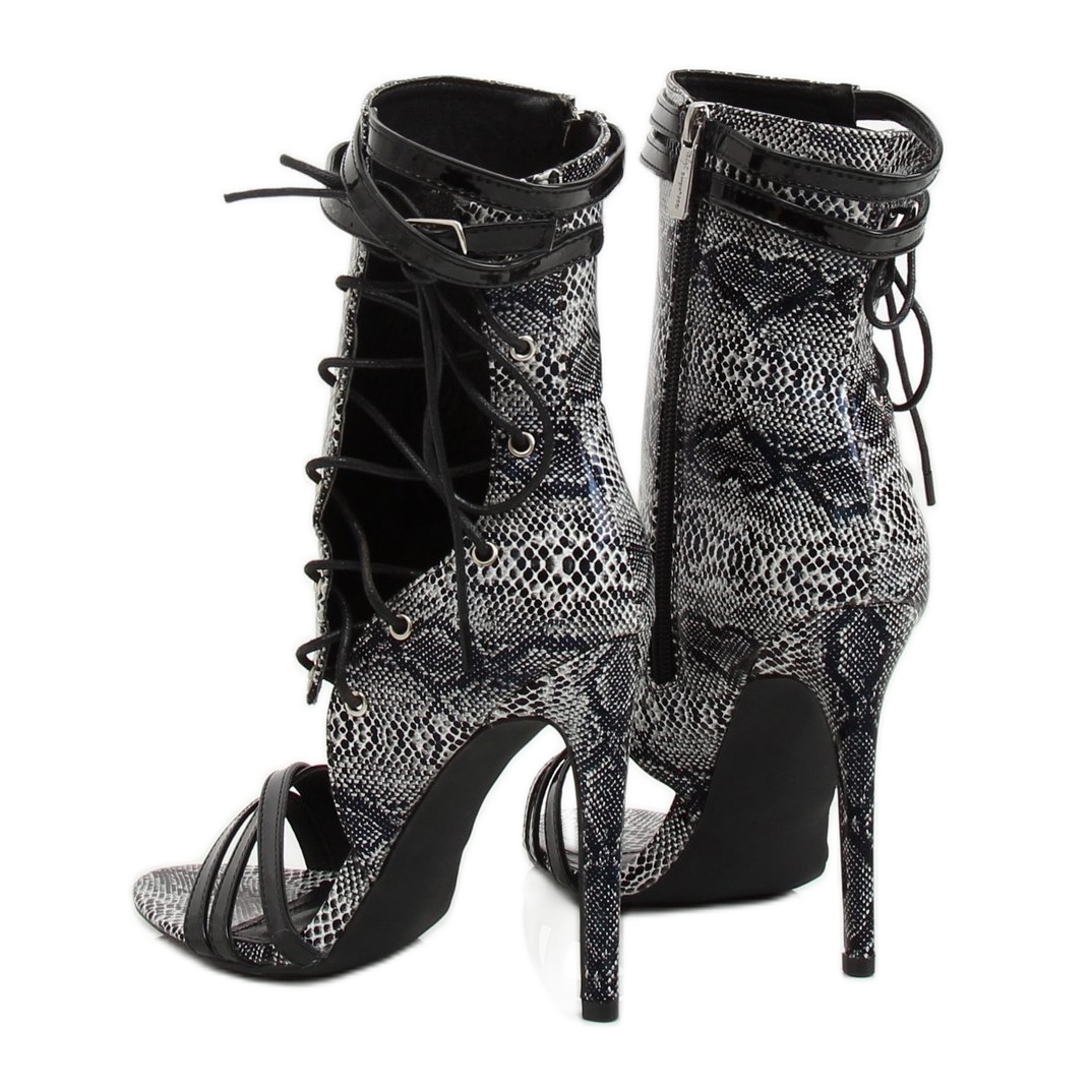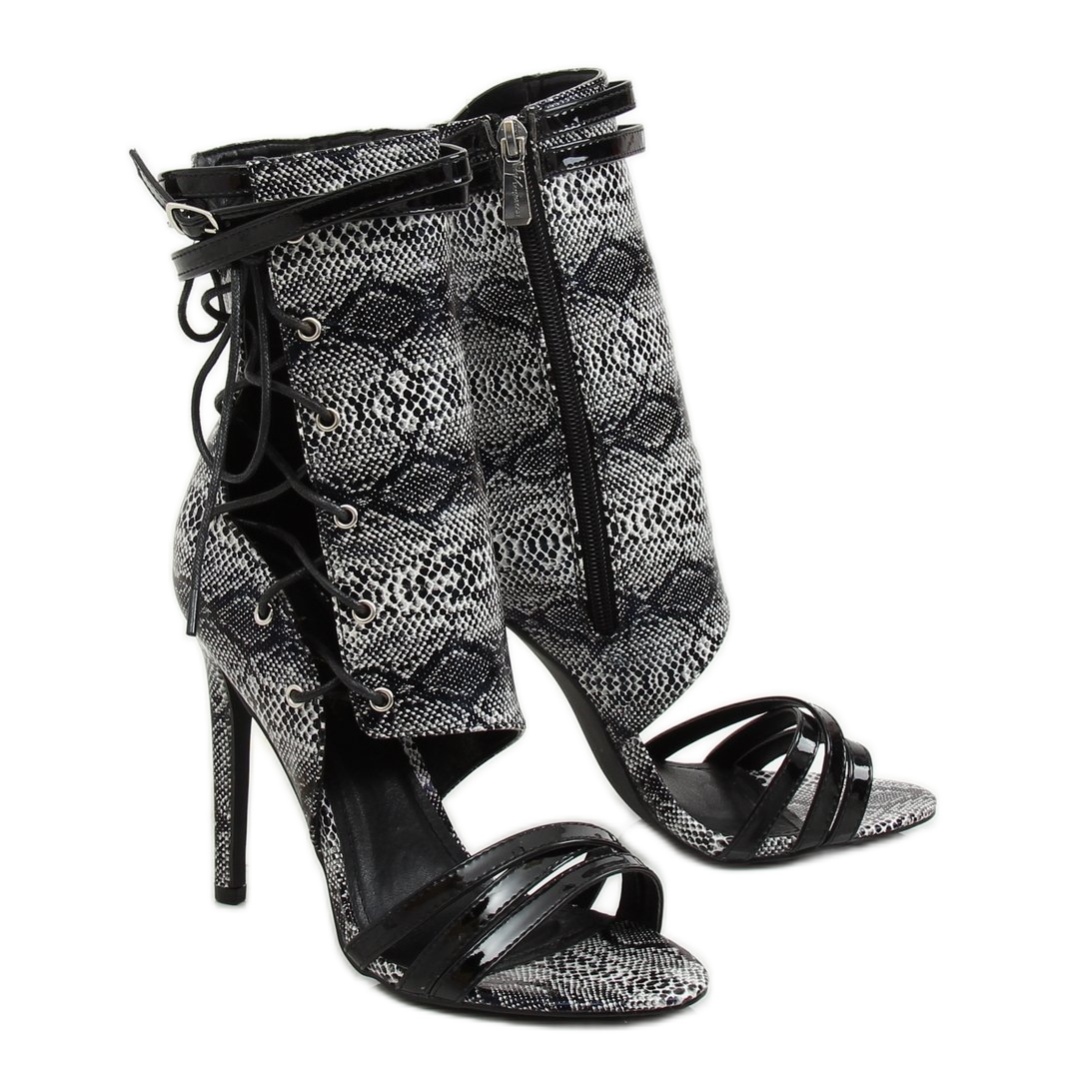 Fabriquées dans des matériaux avec une texture serpent accrocheuse, ces bottines attirent le regard et vous permettront certainement de vous démarquer de la foule. Le laçage original et la fermeture éclair latérale pratique les rendent non seulement superbes, mais également très pratiques. Grâce à eux, vous aurez la garantie d'un confort à chaque moment important.
