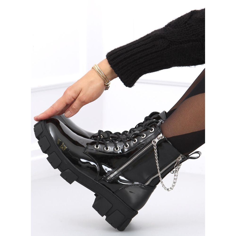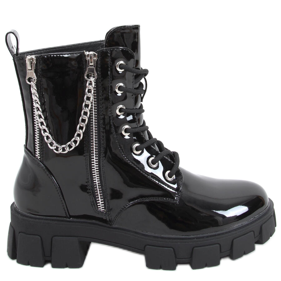 Découvrez une nouvelle dimension de la mode avec les bottines vernies Mina Black avec chaîne ! Ces bottes de travail noires uniques à semelle épaisse sont un incontournable de toute garde-robe féminine. Leur finition laquée attire non seulement l'attention, mais ajoute également du caractère à n'importe quel style.