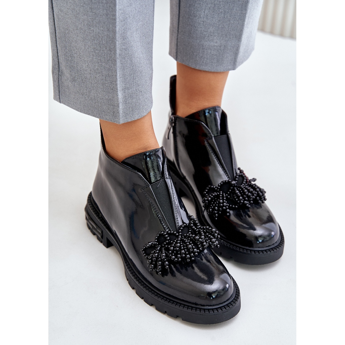 S.Barski S.Barski Bottines en cuir verni avec décoration isolée D&A LZ42-036 Noir le noir