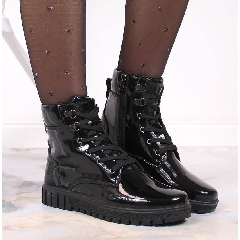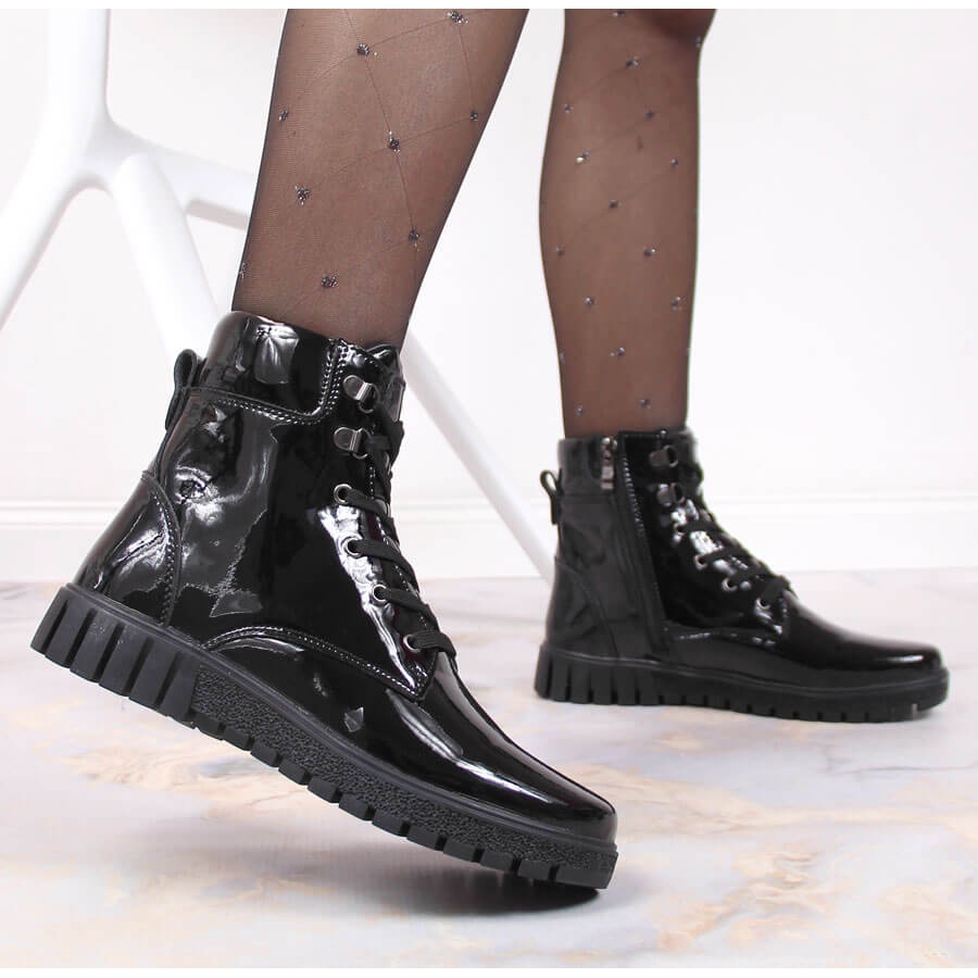 Grâce à la fermeture à lacets, les bottes s'ajustent parfaitement au pied, ce qui les rend encore plus fonctionnelles. La couleur noire classique les rend assortis à de nombreux styles – des jeans de tous les jours aux robes en passant par les jupes élégantes.