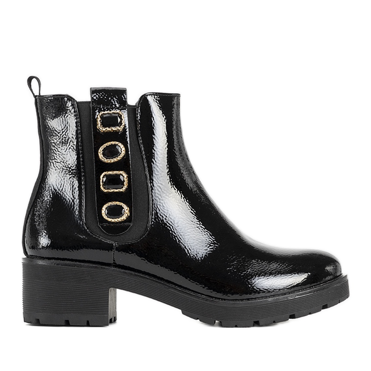 Les bottines Ripple sont l'essence même de l'élégance et du confort que chaque femme devrait avoir dans sa garde-robe. Ces bottines noires classiques, fabriquées en cuir verni de haute qualité, s'adaptent parfaitement à une variété de styles de tous les jours. De subtiles décorations sous forme de strass ajoutent un caractère unique au modèle, ce qui en fait un complément parfait aux tenues décontractées et plus formelles.