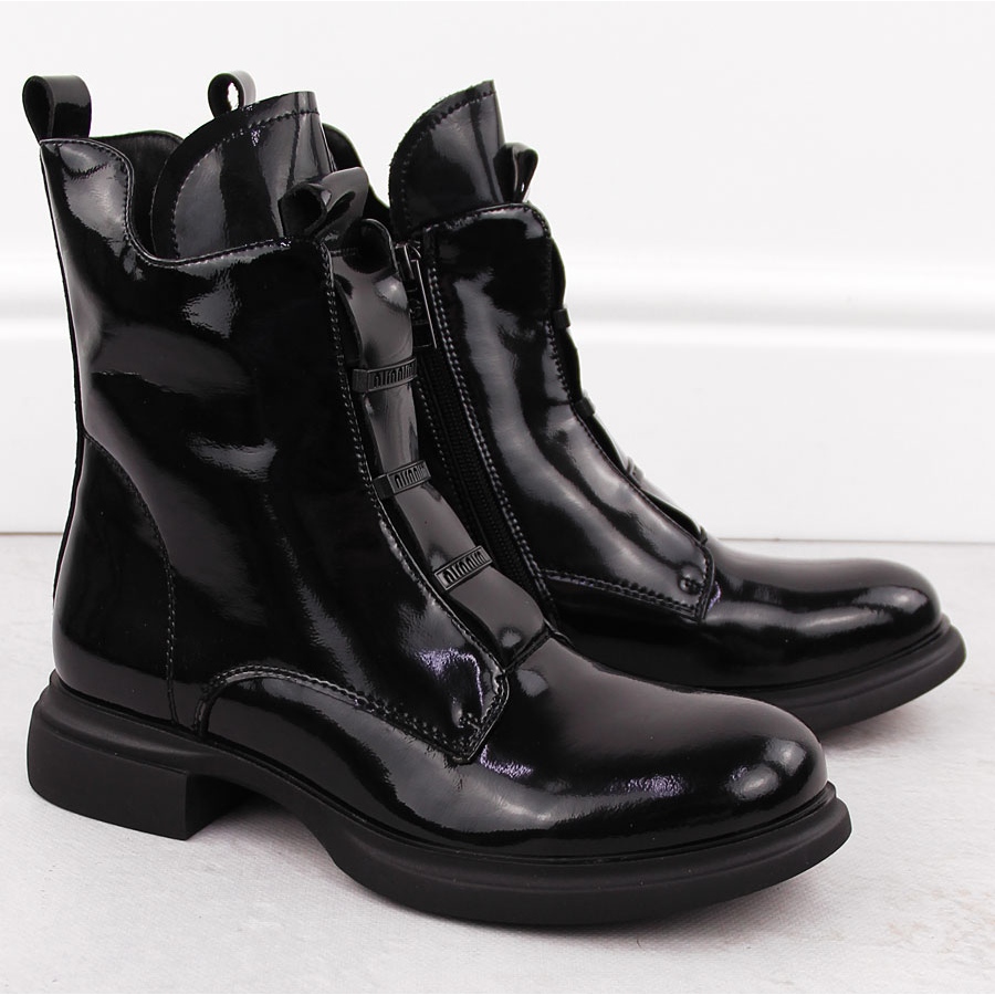Détails: Bottines en cuir verni pour femmes, noires, Vinceza 66678 le noir
