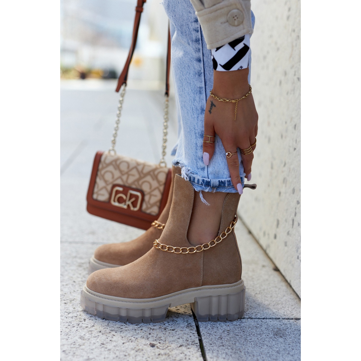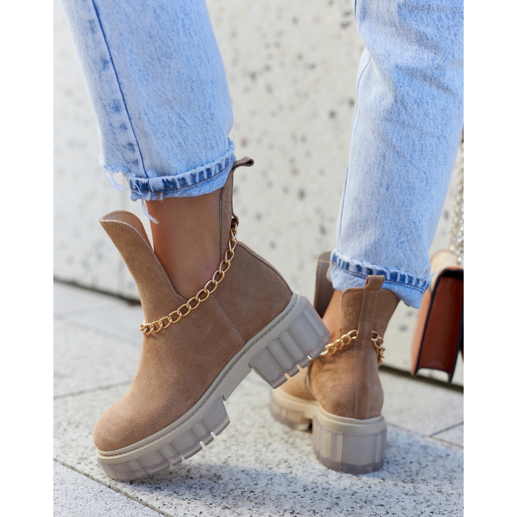 Détails: Bottines en daim à la mode avec une coupe camel Forget Me brun