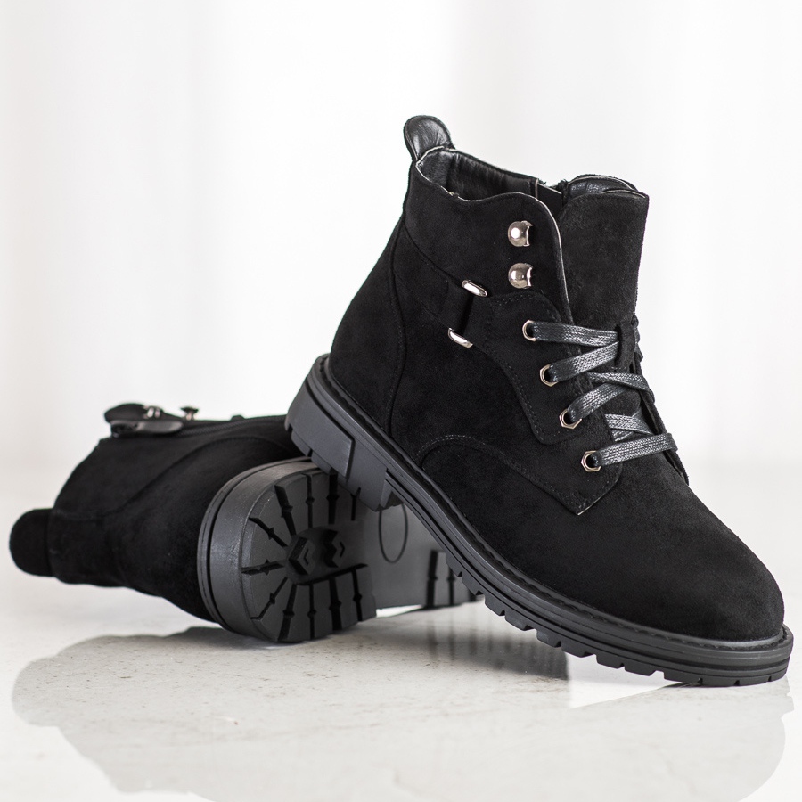 Détails: SHELOVET Bottines en daim à lacets noir