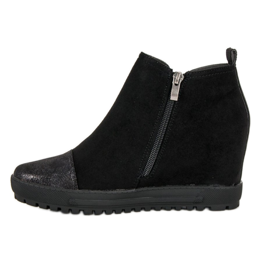 Le bout de la chaussure, orné d'une application brillante, leur confère un caractère jeune et en fait un complément parfait aux styles quotidiens et plus élégants. La cale cachée de 9 centimètres allonge non seulement les jambes, mais assure également la stabilité et le confort une fois porté. Grâce à cela, vous pourrez profiter d’un look attrayant sans vous soucier des pieds fatigués.
