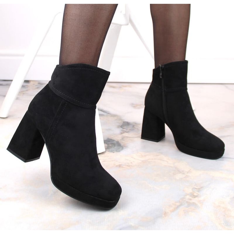 Détails: Bottines en daim à talon haut et plateforme, isolées M.Daszyński W SAN24A, noir le noir