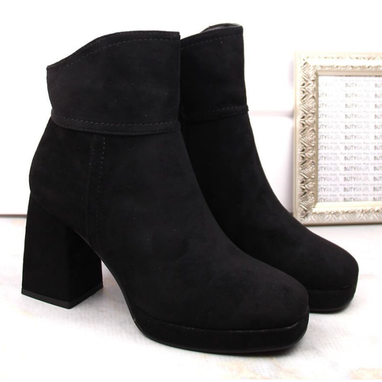 Bottines en daim à talon haut et plateforme, isolées M.Daszyński W SAN24A, noir