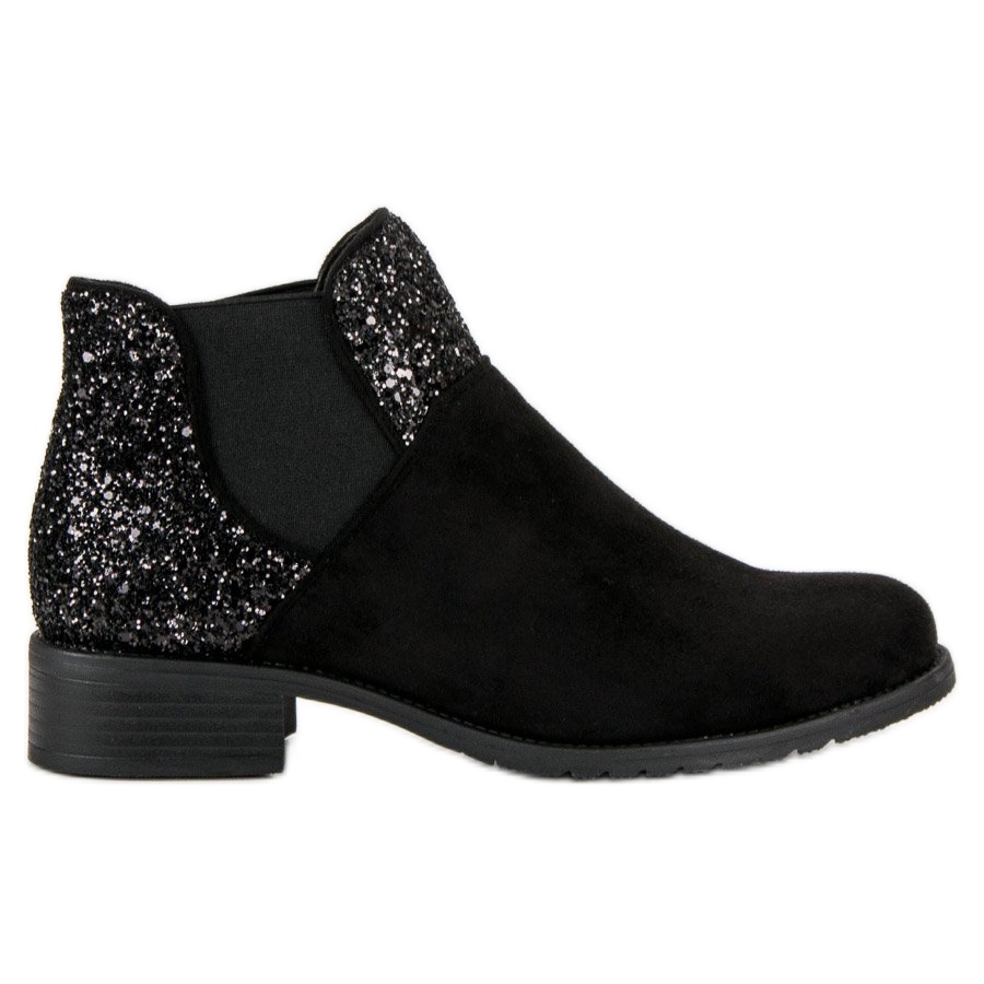 Détails: Bottines en daim à talon plat noir