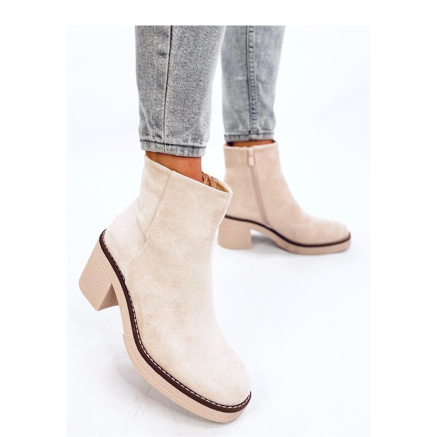 Détails: Bottines en daim à talons larges Eliza Beige - Inello