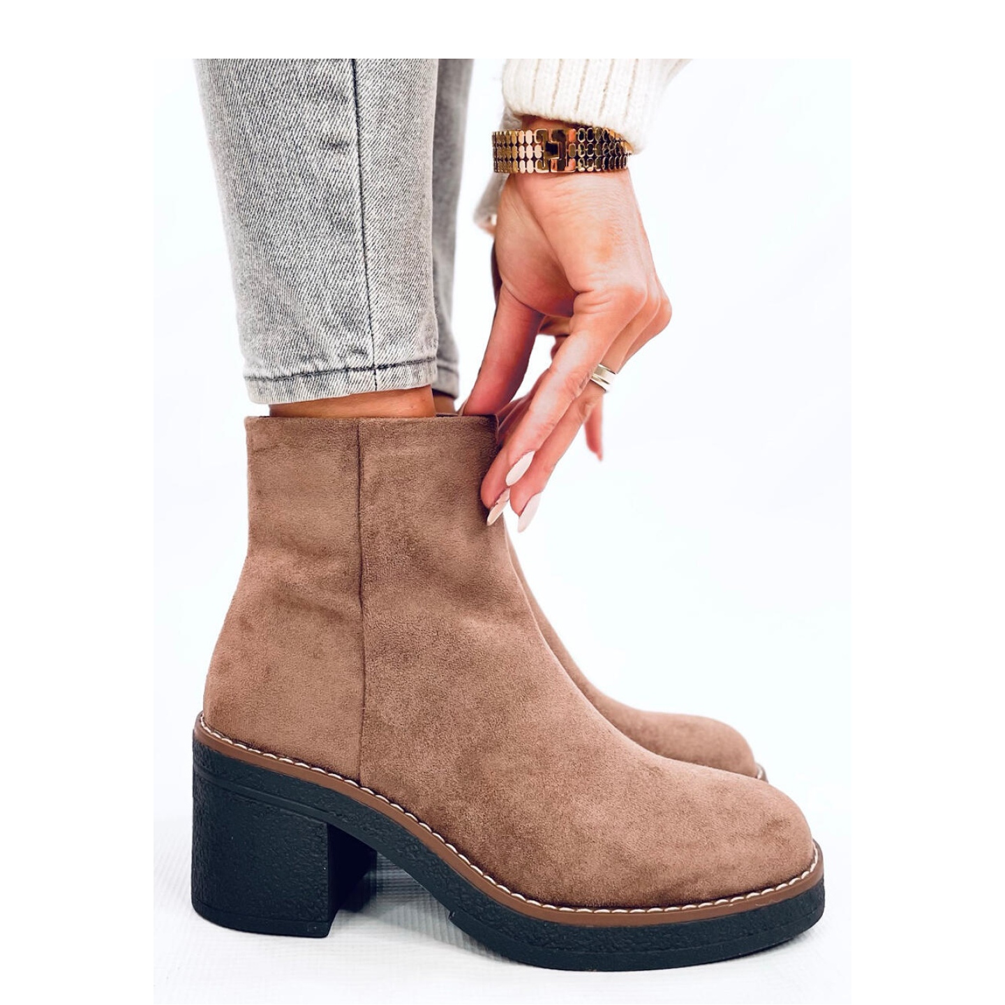 Détails: Bottines en daim à talons larges Eliza Kaki - Inello brun