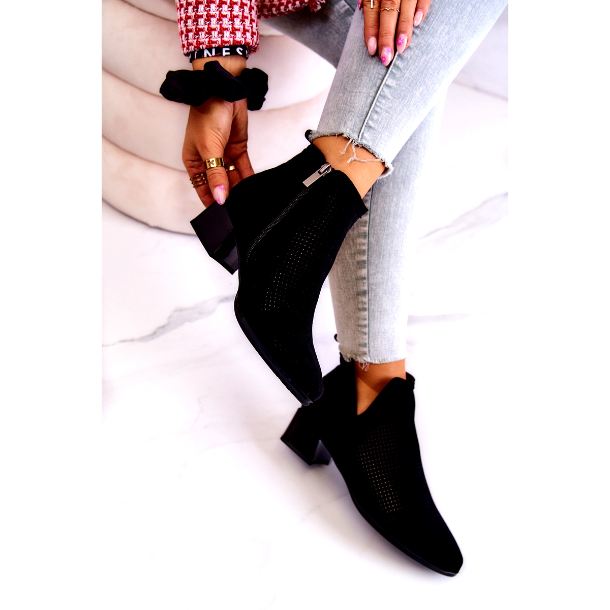 Préparez-vous pour la saison printemps-été avec les élégantes bottines ajourées en daim Vinceza avec découpe en noir ! Ces chaussures uniques sont fabriquées en éco-daim de haute qualité avec un motif ajouré accrocheur qui leur confère légèreté et style.