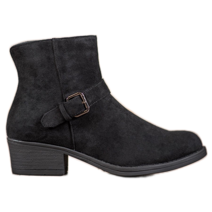 Nous vous présentons les bottines J. Star en daim avec boucle dans une élégante couleur noire, qui seront un complément parfait à votre garde-robe. Ces bottines pour femmes à la mode et confortables sont fabriquées en cuir suédé écologique de la plus haute qualité, ce qui garantit non seulement un aspect esthétique, mais également un confort de port.